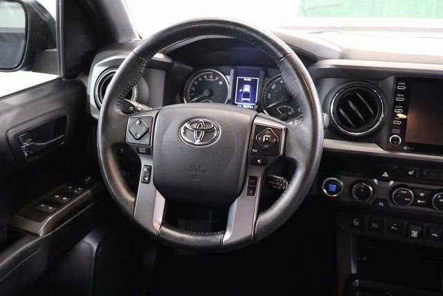 Stylish and rugged, the 2020 Toyota Tacoma TRD Off-Road V6 is the ultimate blend of capability and refinement. With its bold black exterior and striking alloy wheels, this truck turns heads wherever it goes. The LED fog lamps with black bezels and color-keyed rear bumper add a touch of sophistication to the tough, off-road-ready design.