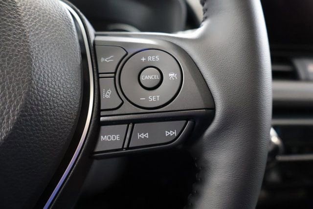 - Urethane tilt/telescopic 3-spoke steering wheel with controls for audio, multi-information display (mid), Bluetooth. ®hands-free phone, voice-command, dynamic radar cruise control (drcc),lane departure alert (lda)and lane trace assist (lta).A compatible. Bluetooth. ®-enabled phone must first be paired. Phone performance depends on software, coverage and carrier. The. Bluetooth. ® word mark and logos are registered trademarks of bluetooth sig, inc. Use of such marks by toyota is under license.,Dynamic radar cruise control is not a substitute for safe and attentive driving. See. Owner’s. Manual. For limitations.,Lane departure alert with steering assist is designed to read visible lane markers under certain conditions. It provides a visual/audible alert and slight steering force when lane departure is detected. It is not a collision-avoidance system or a substitute for safe and attentive driving. Effectiveness depends on many factors including road, weather and vehicle conditions. See. Owner’s. Manual. For limitations.,The lane tracing assist (lta) lane centering function is designed to read visible lane markers and detect other vehicles under certain conditions. It is only operational when drcc is engaged. See. Owner's. Manual. For limitations.