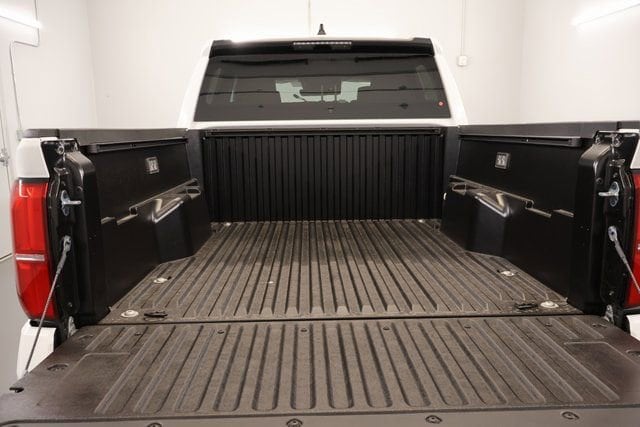 - Deck rail system with four adjustable tie-down cleats and fixed cargo bed tie-down points.