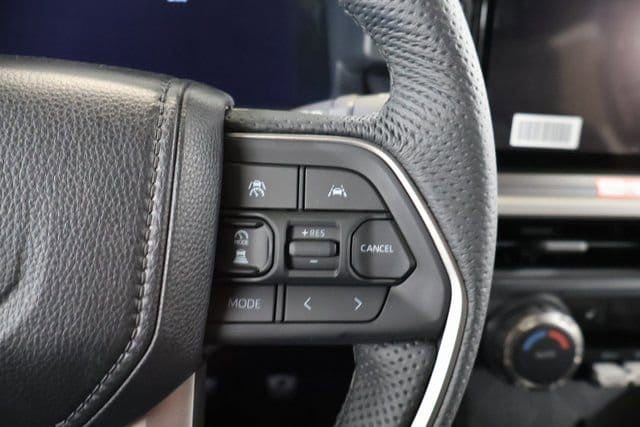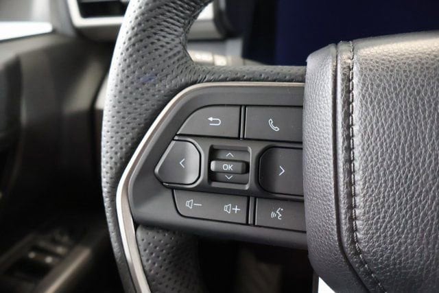 - Leather-trimmed manual tilt/telescopic steering wheel with phone, audio, display/infotainment, and driver assist controls.
