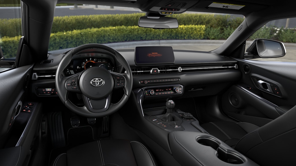 - 8.8-in. Touchscreen with supra commandfeaturing touchpad control with navigation,am/fm, digital audio, siriusxm®,wireless apple carplay®compatible, voice recognitionand usb/. Bluetooth. ®connectivity. See toyota.Com/connected-services/grsupra-support for details.Concentrating on the road should always be your first priority while driving.,Available on select gr supra models. Includes a 4-year trial period. Services require 4g cellular network availability, a cellular connection and gps signal. Without any one or more of these things, operability and availability may be limited or precluded. Service not available in every city or roadway. Use common sense when relying on information provided. Services vary by vehicle and are subject to change at any time without notice. Terms of use apply. Data charges may apply. For service details and limitations, see your navigation system. Owner’s manual. And. Supraconnect.Com. For service details and limitations. For supra connect data collection, use, sharing, and retention practices, please visit. Supraconnect.Com/terms-and-conditions.Html. .,Service will automatically stop at the end of your trial subscription period unless you decide to continue service. Trial is non-transferable. If you do not wish to enjoy your trial, you can cancel by calling the number below. All siriusxm services require a subscription, each sold separately by siriusxm after the trial period. Service subject to the siriusxm customer agreement and privacy policy, visit siriusxm.Com for complete terms and how to cancel which includes online methods or calling 1-866-635-2349. Some services and features are subject to device capabilities and location availability. Satellite service not available in ak & hi. Content varies by siriusxm subscription plan. All fees, content and features are subject to change. Siriusxm and related logos are trademarks of sirius xm radio inc. And its respective subsidiaries.,Available on select gr supra models. Requires compatible iphone® and active data plan. Operability depends on network availability, a cellular connection, and gps signal. Services vary by vehicle and are subject to change at any time without notice. Data charges may apply. See. Owner’s manual. Or. Supraconnect.Com. For service details and limitations. For. Supra connect terms and conditions. And data collection, use, sharing, and retention practices, please visit. Supraconnect.Com/terms-and-conditions.Html. . Apple carplay® and iphone® are registered trademarks of apple inc.,Voice recognition capabilities vary by head unit.,May not be compatible with all mobile phones, smart devices, tablets, e-readers, mp3/wma players and like models.,A compatible. Bluetooth. ®-enabled phone must first be paired. Phone performance depends on software, coverage and carrier. The. Bluetooth. ® word mark and logos are registered trademarks of bluetooth sig, inc. Use of such marks by toyota is under license.