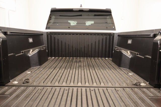 - Deck rail system with four adjustable tie-down cleats and fixed cargo bed tie-down points.