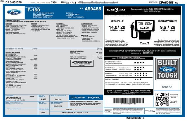 We Buy cars- Fast, Fair and Easy This 2012 Oxford White Ford F-150 XLT 4WD is well equipped and includes these features and benefits: XLT Convenience Package (4.2 LCD Screen in Cluster, 6-Way Power Driver Seat, Heated Power Side Mirrors, Leather-Wrapped Steering Wheel, Power Adjustable Pedals, and SYNC), GVWR: 7,350 lbs Payload Package, ABS brakes, Alloy wheels, Compass, Electronic Stability Control, Illuminated entry, Low tire pressure warning, Remote keyless entry, Traction control, 17 Machined-Aluminum w/Painted Accents Wheels, 3.55 Axle Ratio, 4 Speakers, 4-Wheel Disc Brakes, Air Conditioning, AM/FM radio, AM/FM Stereo/Clock/Single CD, Bumpers: chrome, CD player, Cloth 40/20/40 Front Seat, Delay-off headlights, Driver door bin, Driver vanity mirror, Dual front impact airbags, Dual front side impact airbags, Front anti-roll bar, Front Center Armrest w/Storage, Front fog lights, Front reading lights, Front wheel independent suspension, Fully automatic headlights, Occupant sensing airbag, Outside temperature display, Overhead airbag, Overhead console, Panic alarm, Passenger door bin, Passenger vanity mirror, Power door mirrors, Power steering, Power windows, Radio data system, Rear reading lights, Rear step bumper, Security system, Speed control, Speed-sensing steering, Split folding rear seat, Tachometer, Tilt steering wheel, and Variably intermittent wipers.