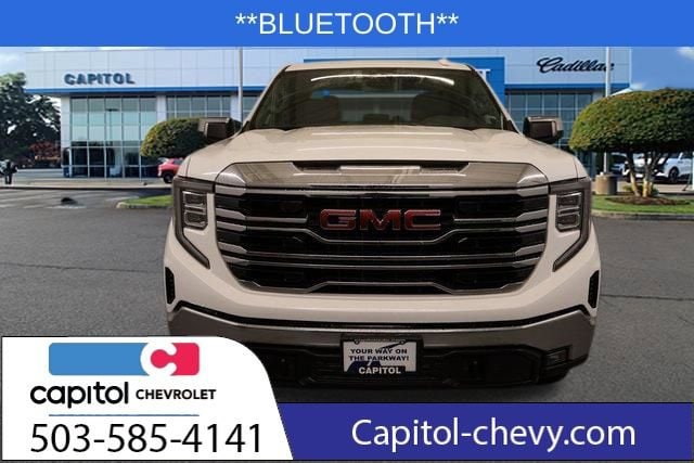We Buy cars- Fast, Fair and Easy This 2025 Summit White GMC Sierra 1500 SLT 4WD is well equipped and includes these features and benefits: Preferred Equipment Group 4SA (120-Volt Bed Mounted Power Outlet, 120-Volt Interior Power Outlet, 170 Amp Alternator, 2 Charge/Data USB Ports, 2 Type-C Charge-Only Rear USB Ports, 6-Speaker Audio System Feature, Auto-Locking Rear Differential, Auxiliary External Transmission Oil Cooler, Chrome Header & Chrome Grille Insert Bars, Color-Keyed Carpeting Floor Covering, Deep-Tinted Glass, Electric Rear-Window Defogger, Front Frame-Mounted Black Recovery Hooks, Front Rain-Sensing Wipers, HD Rear Vision Camera, Integrated Trailer Brake Controller, Keyless Open & Start, LED Cargo Area Lighting, Manual Tilt-Wheel & Telescoping Steering Column, OnStar Services Capable, Perimeter Lighting, Power Door Locks, Power Front Passenger Windows w/Express Up/Down, Power Front Windows w/Driver Express Up/Down, Power Rear Windows w/Express Down, Push Button Start, Rear Wheelhouse Liners, Remote Vehicle Starter System, SiriusXM w/360L Trial Subscription, Steering Wheel Audio Controls, Theft Deterrent System (Unauthorized Entry), and Wi-Fi Hotspot Capable), Standard Suspension Package, Trailering Package (Hitch Guidance), 10-Way Power Driver Seat Adjuster w/Lumbar, 10-Way Power Passenger Seat Adjuster w/Lumbar, 3.23 Rear Axle Ratio, 4-Wheel Disc Brakes, 6 Speakers, ABS brakes, Air Conditioning, Alloy wheels, AM/FM radio: SiriusXM with 360L, Apple CarPlay/Android Auto, Auto High-beam Headlights, Auto-dimming door mirrors, Auto-dimming Rear-View mirror, Automatic Emergency Braking, Automatic temperature control, Brake assist, Buckle to Drive, Bumpers: chrome, Compass, Delay-off headlights, Driver door bin, Driver Memory, Driver vanity mirror, Dual front impact airbags, Dual front side impact airbags, Electronic Stability Control, Emergency communication system: OnStar, Following Distance Indicator, Forward Collision Alert, Front 40/20/40 Split-Bench Seat, Front anti-roll bar, Front Center Armrest w/Storage, Front dual zone A/C, Front fog lights, Front License Plate Kit, Front Pedestrian Braking, Front reading lights, Front wheel independent suspension, Fully automatic headlights, Heated door mirrors, Heated Driver & Front Outboard Passenger Seating, Heated front seats, Heated steering wheel, Illuminated entry, IntelliBeam Automatic High Beam On/Off, Lane Keep Assist w/Lane Departure Warning, Low tire pressure warning, Memory seat, Occupant sensing airbag, Outside temperature display, Overhead airbag, Overhead console, Panic alarm, Passenger door bin, Passenger vanity mirror, Perf Leather-Appointed Front Outboard Seat Trim, Power door mirrors, Power driver seat, Power passenger seat, Power steering, Power windows, Radio data system, Radio: Premium GMC Infotainment Audio System, Rain sensing wipers, Rear reading lights, Rear seat center armrest, Rear step bumper, Rear window defroster, Remote keyless entry, Security system, Speed control, Speed-sensing steering, Split folding rear seat, Steering wheel mounted audio controls, Tachometer, Telescoping steering wheel, Tilt steering wheel, Traction control, Trip computer, Variably intermittent wipers, Voltmeter, Wheels: 18 x 8.5 6-Spoke Machined Aluminum, and Wireless Apple CarPlay/Wireless Android Auto.