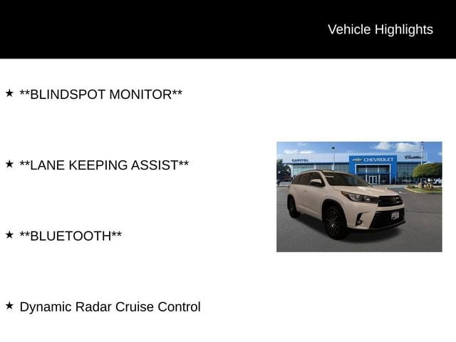This 2018 Toyota Highlander SE is a true standout in the crowded SUV market. With its impressive performance, advanced technology, and exceptional utility, it's the perfect vehicle to elevate your driving experience. Visit our showroom today and let us demonstrate how this Highlander can exceed your expectations.