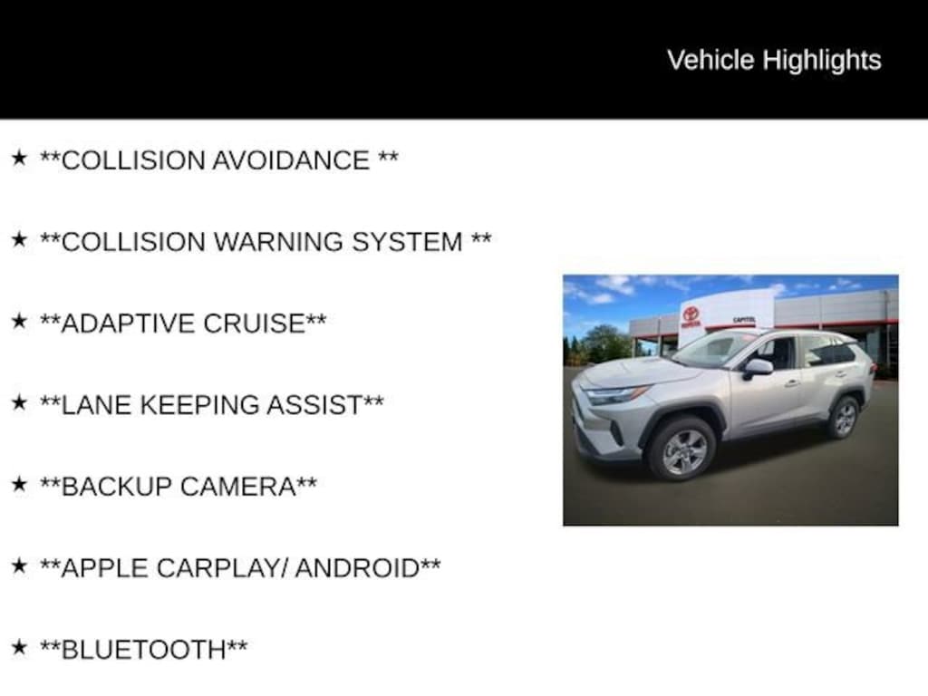 * While every reasonable effort is made to ensure the accuracy of this information, we are not responsible for any errors or omissions contained on these pages. Please verify any information in question with Capitol Toyota. Subject to prior sale. Prices do not include license fees, title fees, $100 Doc fees or dealership fees. All financing on approved credit. All sale prices on in stock units only. All prices after applicable dealer discounts and TMS Rebates. All rebates or cash back from TMS and all financing through TFS unless otherwise specified. Military and College Rebates do not apply unless otherwise specified. Oregon residents do not pay sales tax.