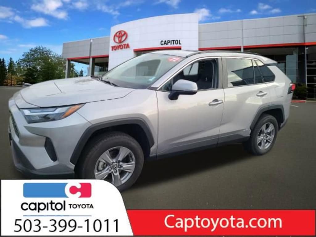 We Buy cars- Fast, Fair and Easy This 2022 Silver Sky Metallic Toyota RAV4 Hybrid XLE AWD is well equipped and includes these features and benefits: 4-Wheel Disc Brakes, 6 Speakers, ABS brakes, Air Conditioning, Alloy wheels, AM/FM radio: SiriusXM, AM/FM Stereo, Apple CarPlay/Android Auto, Auto High-beam Headlights, Automatic temperature control, Axle Ratio: TBD, Brake assist, Bumpers: body-color, Delay-off headlights, Driver door bin, Driver vanity mirror, Dual front impact airbags, Dual front side impact airbags, Electronic Stability Control, Emergency communication system: Safety Connect with 1-year trial, Exterior Parking Camera Rear, Fabric Seat Trim (FA), Four wheel independent suspension, Front anti-roll bar, Front Bucket Seats, Front Center Armrest, Front dual zone A/C, Front fog lights, Front reading lights, Front Sport Seats, Fully automatic headlights, Heated door mirrors, Illuminated entry, Knee airbag, Lane Departure Warning System, Low tire pressure warning, Occupant sensing airbag, Outside temperature display, Overhead airbag, Overhead console, Panic alarm, Passenger door bin, Passenger vanity mirror, Power door mirrors, Power driver seat, Power steering, Power windows, Radio data system, Rear anti-roll bar, Rear seat center armrest, Rear window defroster, Rear window wiper, Remote keyless entry, Roof rack: rails only, Speed control, Speed-sensing steering, Split folding rear seat, Spoiler, Steering wheel mounted audio controls, Telescoping steering wheel, Tilt steering wheel, Traction control, Trip computer, Turn signal indicator mirrors, Variably intermittent wipers, and Wheels: 17 x 7.0J Silver Aluminum Alloy.