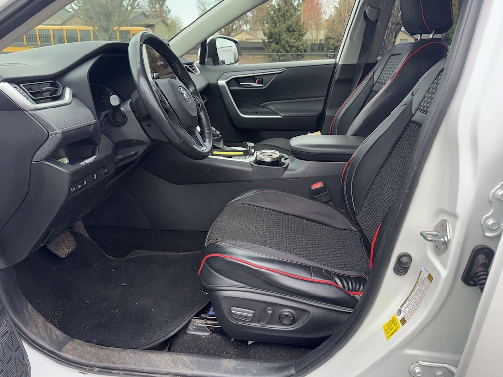 Elevate your driving experience with the RAV4 Hybrid XLE's array of premium features, including a tilt and slide moonroof, heated front seats, and a leather-wrapped steering wheel. Stay connected with the state-of-the-art infotainment system, complete with SiriusXM radio and a rearview camera for added peace of mind.